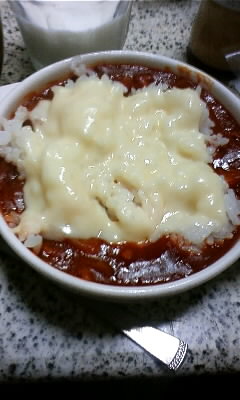 (一昨日のハヤシ+チーズ+ご飯)